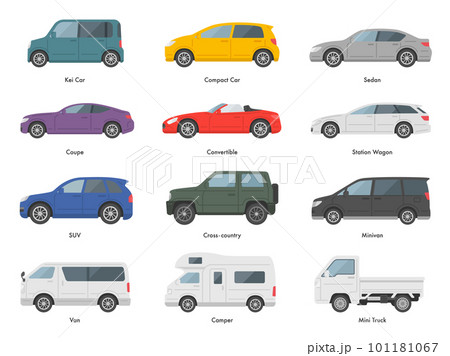 色々な車種のイラストセット・乗用車・軽自動車・SUV・コンパクトカー