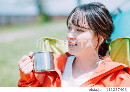 ソロキャンプを楽しむ女子