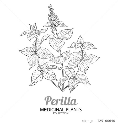 Perilla Plant with Flowers Outline Illustration.