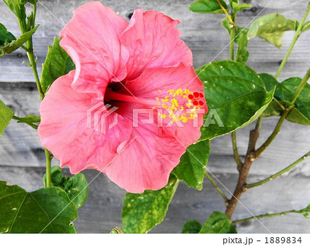 ハイビスカスと葉のセット 手描き水彩イラスト