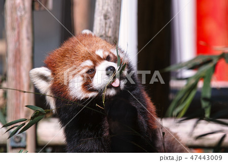 竹の葉を食べるレッサーパンダ 多摩動物公園 東京都日野市