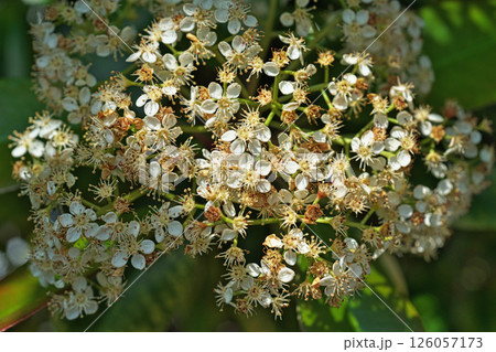 満開のアカメノキ(白い花をたくさんつけたベニカナメモチ)