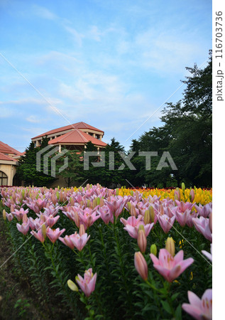 埼玉県深谷市アクアパラダイスパティオ 朝咲き誇る美しい百合