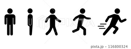 人のアイコンセット 立つ 歩く 走る ダッシュ