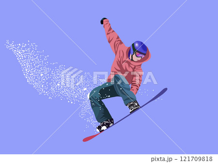 スノーボーダーと雪煙イラスト