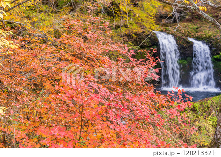 【山梨県富士吉田市】紅葉に包まれた鐘山の滝(かねやまのたき)
