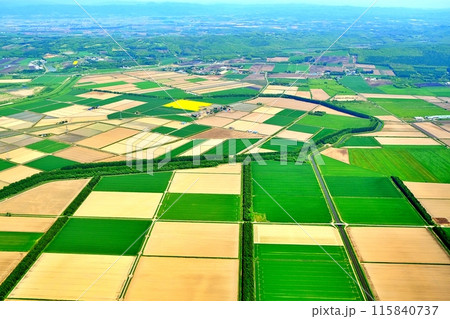 空撮した北海道の田園風景