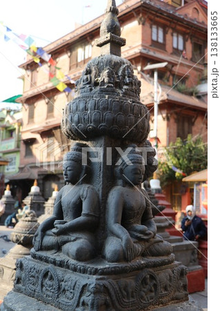 ネパール カトマンズの広場に建つ仏教寺院のストゥーパのカーススワヤンブ