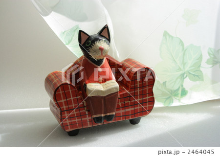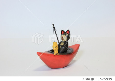 釣りをする猫の置物
