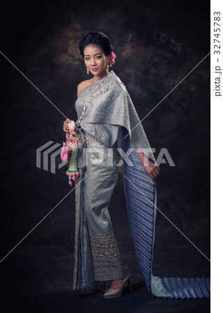 Beautiful asian woman wears a national dress