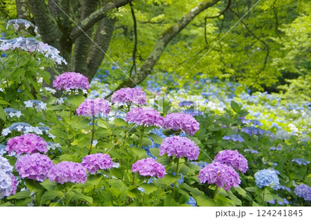 静岡県下田市下田公園 伊豆のアジサイの名所の斜面を埋め尽くす満開の紫陽花
