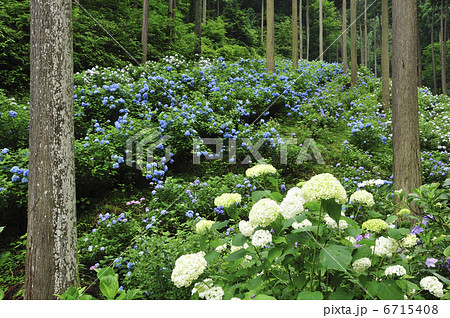 湖北地方の針葉樹林とアジサイ 滋賀県長浜市木之本町大音
