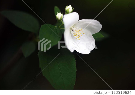5月19日(2024)梅花空木の蕾、淡く開く。花言葉は「気品」「回想」「香気」。