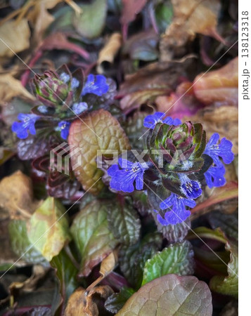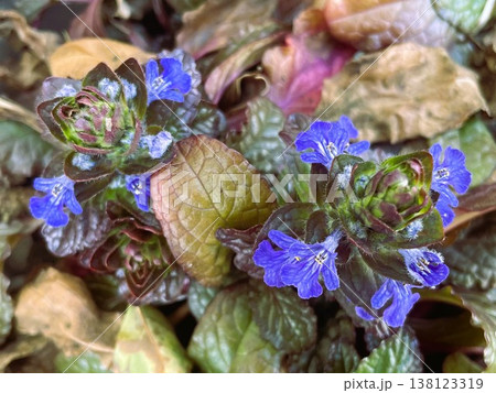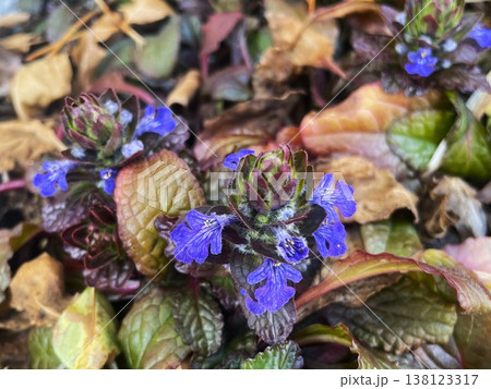 紫色のアジュガの花(春、四月)