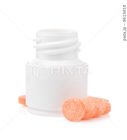 Vitamin lozenges or supplement tablets isolated on white background