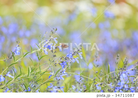 スカイブルーセージとイチモンジセセリ