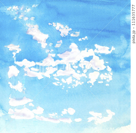 夏の空と雲をイメージした水彩イラスト【手描き】