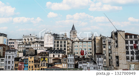 ISTANBUL, TURKEY - NOVEMBER 01, 2025: Galata Tower and Ataturk poster view