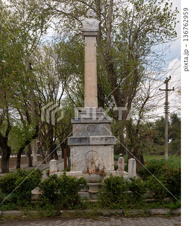 Memorial obelisk monument at the Ataturk central square of Fethiye city, Turkey