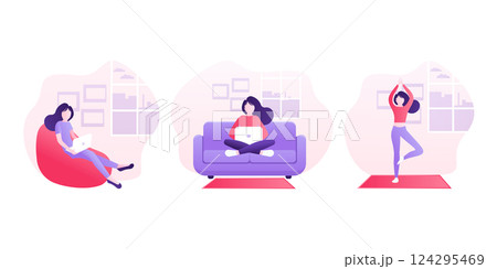 Stay home concept. Flat icon. Self isolation, quarantine due to coronavirus. Work from home.