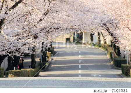 桜並木をバックに