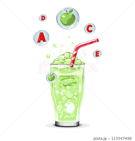 Healthy green apple oxygen cocktail with air bubbles. Isolated vector summer drink for design