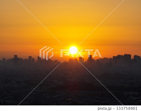 【東京・武蔵野上空から空撮】 都会の日の出