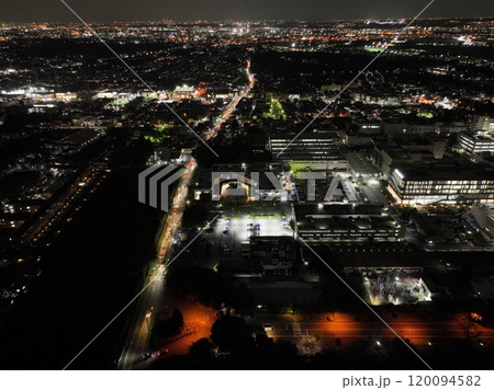 【都内上空から空撮・夜景】教会とキリスト教大学の灯かり