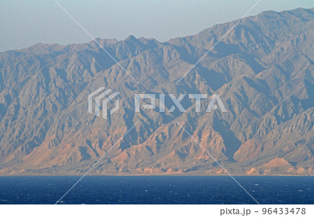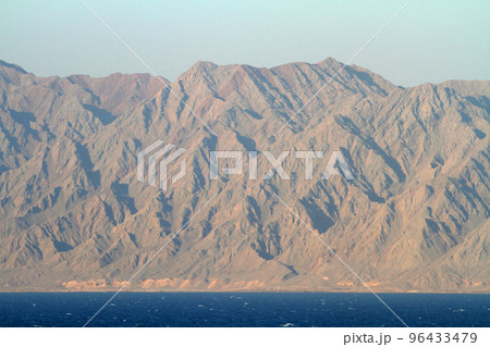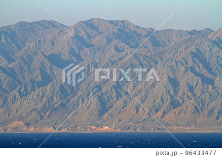 紅海入口のバベル・マンデブ海峡の夕景