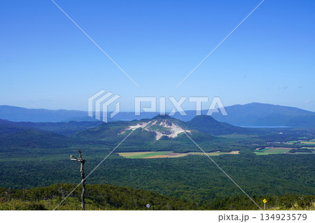 摩周湖第三展望台から見る硫黄山と屈斜路湖