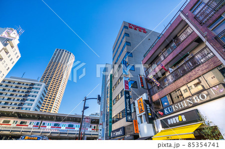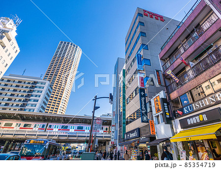 都市風景 夕方の中目黒駅前の街並み 東京都目黒区
