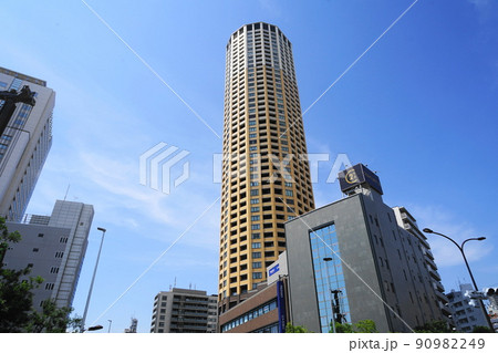 中目黒アトラスタワーを見上げる 夏晴れの青空 東京都目黒区