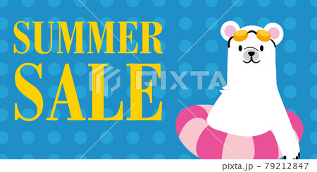 サマーセール 夏の販売促進バナーテンプレート 浮き輪をつけたホッキョクグマのイラスト