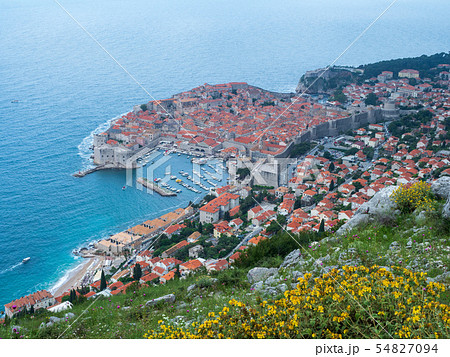 クロアチア ドゥブロヴニクの旧市街の街並みとアドリア海