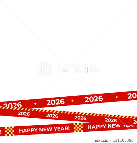 Red and yellow 2026 Happy New Year ribbon set. Crossing decorative bands for holiday design, social media, party visuals, print. Flat vector illustration.