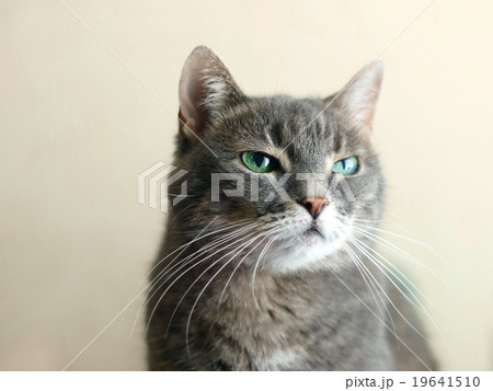Portrait of a tabby kitten with expressive contemptuous look, human-like emotion