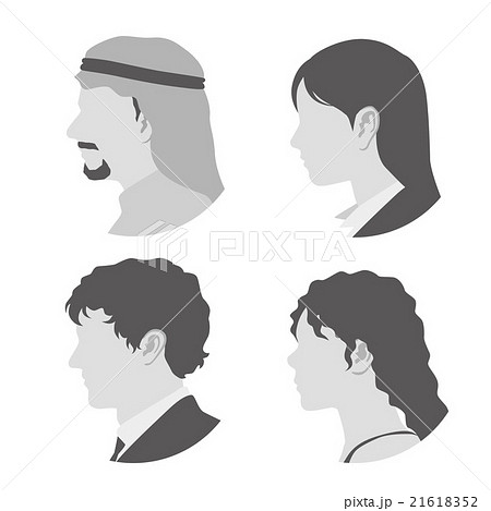 様々な国や人種の男性と女性 横顔アイコン アバター