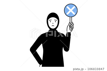 不正解を示す×の棒を持つイスラムの女性