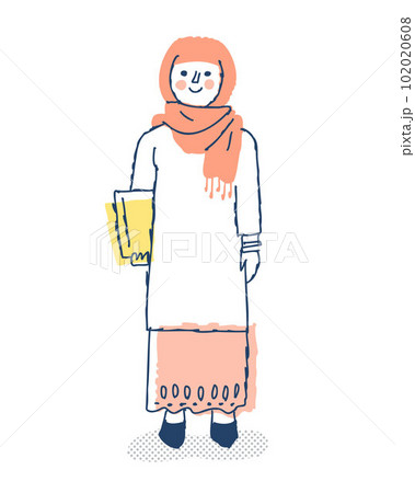 民族衣装を着たアラブの女性がファイルを持っている