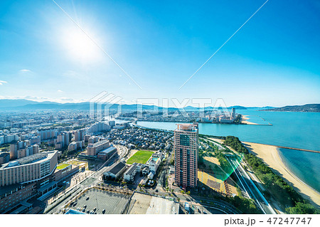 moden city skyline aerial view in Fukuoka Japan