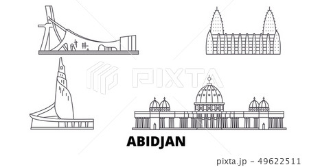 Cote Divoire, Abidjan line travel skyline set. Cote Divoire, Abidjan outline city vector