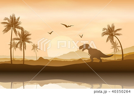 Silhouette of a dinosaur in riverbank background