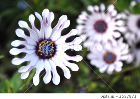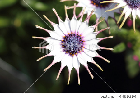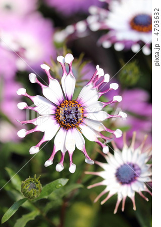 星形雌しべと紫雄しべカラフル花心の白いオステオスペルマム