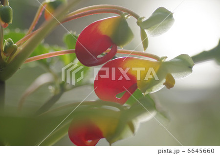 アフリカ東部原産の下部が黄色で先が赤色の面白い形の花が可愛いインパチエンス・ニアムニアメンシス