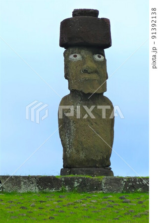 チリ イースター島 アフ・コテリクの瞳のあるモアイ