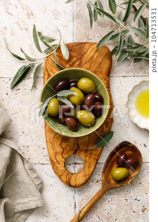 Watercolor set with black olive, branch and bottle with oil. Hand painted illustration with olive berries and tree branches with leaves isolated on white background. For design, print and fabric.
