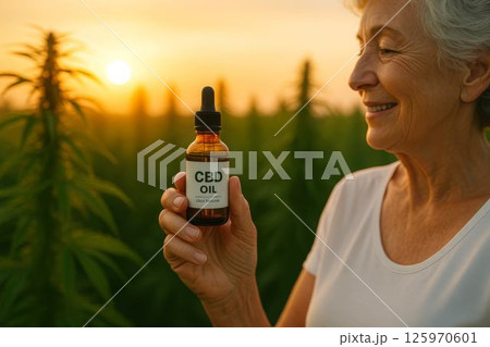 Elderly woman with cbd oil. Pharmaceutical medicine In cannabis field. Concept Melatonin production