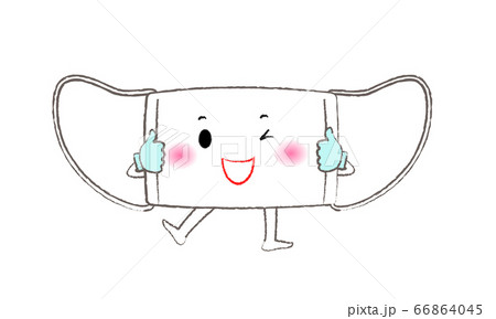 咳エチケットのためのマスク着用のお願いのキャラクター(ウインクにグッドポーズ)