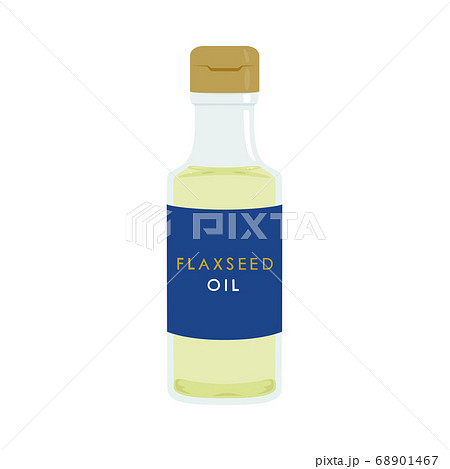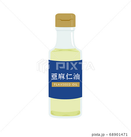 瓶に入った亜麻仁油のイラスト。日本語のラベル付き。
