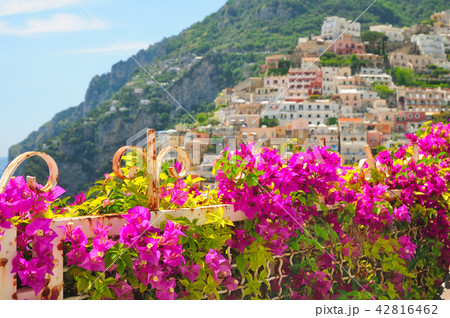 南欧イタリア共和国カンパニア州サレルノ県 ティレニア海沿岸の世界遺産アマルフィ海岸ポジターノの街並み